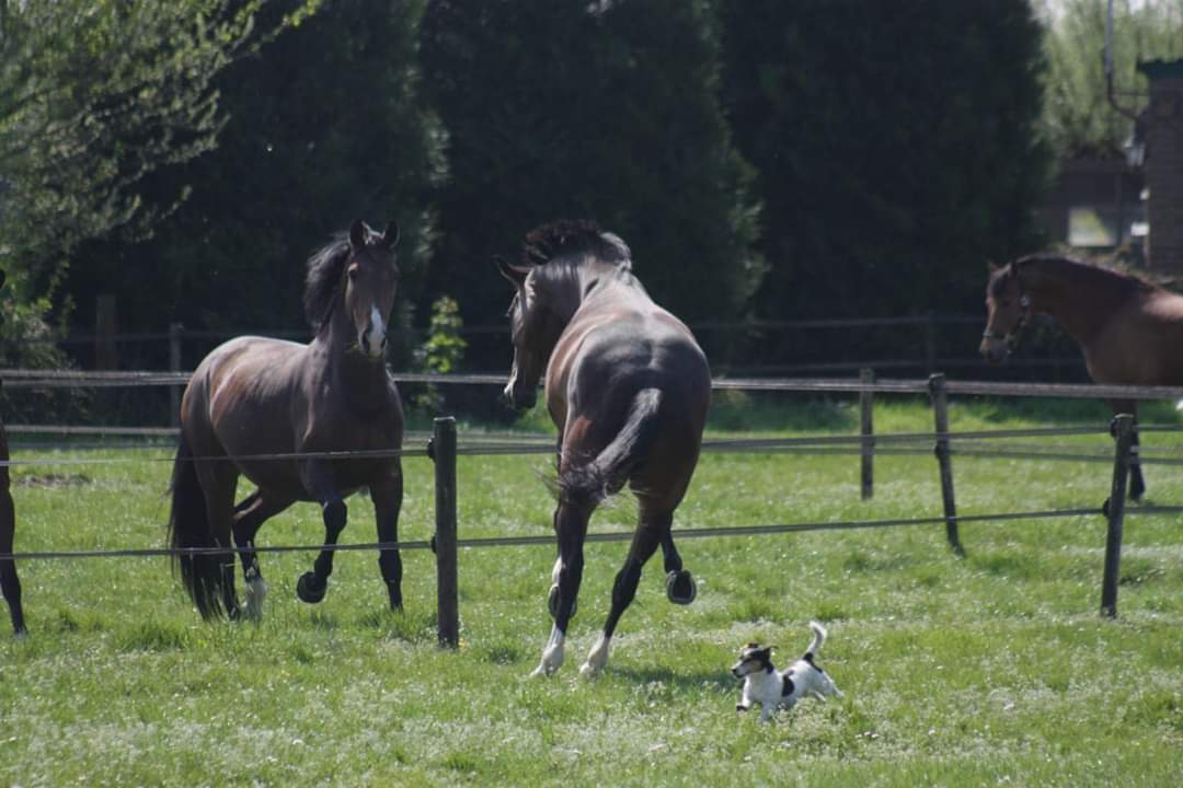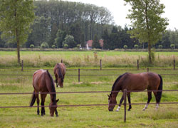 Als een van de weinige komen alle paarden bij ons elke dag buiten. Bij goede weersomstandigheden brengen we samen met u de paarden 's morgens naar de wei en eind van de dag worden ze weer binnen gehaald. De paarden lopen bij ons in groepjes van 2, 3 van 4 paarden in de weides. We beschikken over voldoende land wat afgezet is met degelijke omheiningen en is voorzien van vers drinkwater.